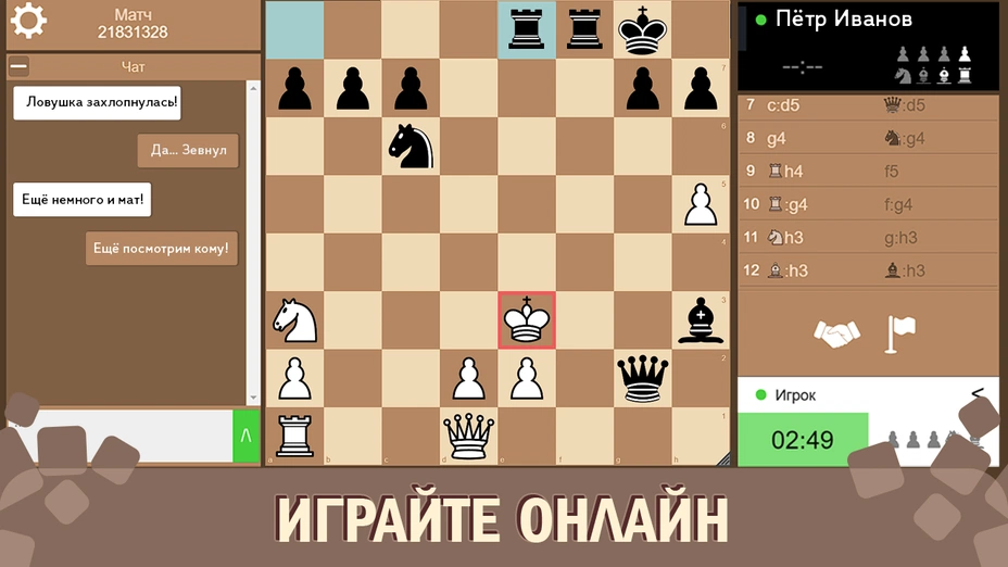 Шахматы — это не просто игра, а целый мир, полный красоты, логики и бесконечных возможностей. Эта цифровая версия сохранила всё величие древней игры и добавила удобство современных технологий. Тренируйтесь в задачах, побеждайте в партиях с живыми людьми, повышайте свой рейтинг и просто получайте удовольствие от процесса. Хотите проверить свой ум? Хотите испытать азарт интеллектуальной дуэли? Тогда скорее делайте первый ход. До встречи в рейтинге! ♟️